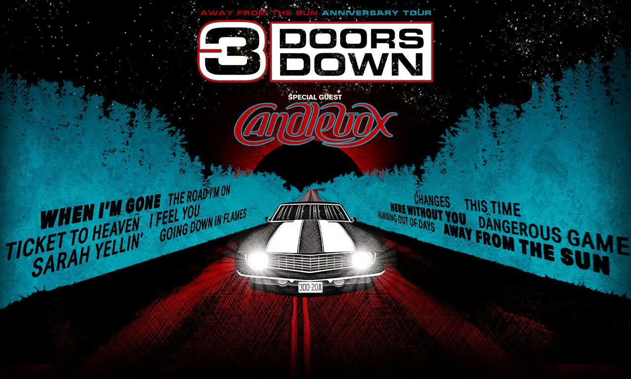 Formed in 1996, Grammy Award®-nominated multi-platinum Mississippi rock band 3 Doors Down consistently captivates audiences worldwide. The quintet’s many accolades include selling more than 20 million albums globally, receiving a Grammy nomination, two American Music Awards, and five BMI Pop Awards for songwriting, including ”Songwriter of the Year.” Their debut, The Better Life, became certified seven-times RIAA platinum and was fueled by the success of juggernaut hit ”Kryptonite.” Away From The Sun has been certified five-times platinum. In 2023, to celebrate the anniversary of Away From The Sun, the band will play all the songs from the album along with all their hits in Amphitheaters across the US.